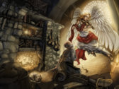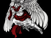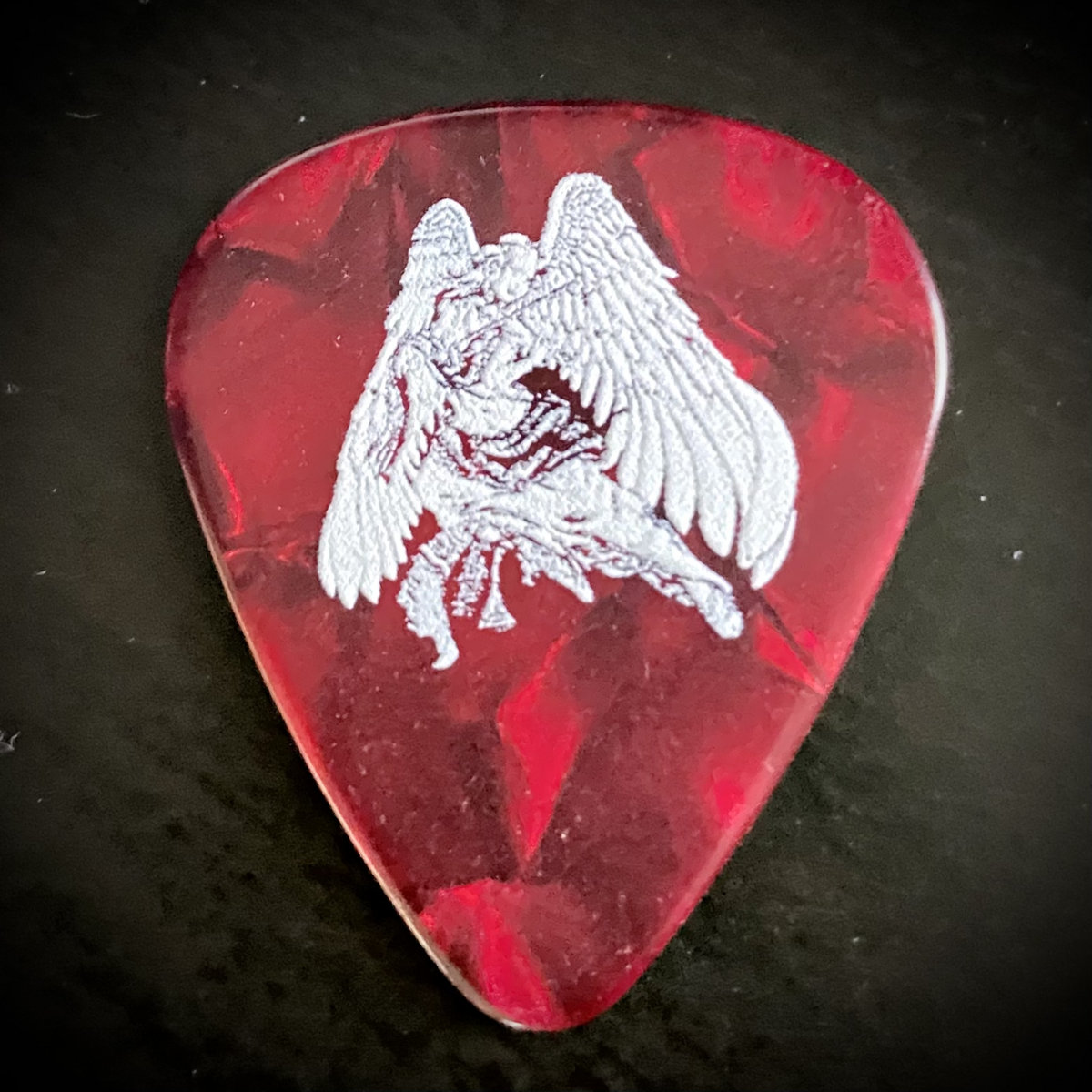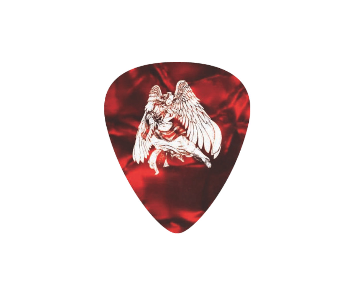 Heavy (.96mm), Red Pearloid, one-sided white ink print of album cover angel.
